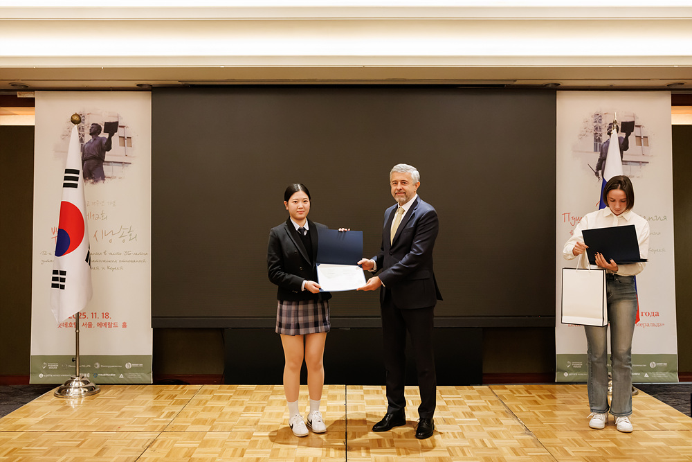 특히 이날 시상식에는 게오르기 지노비예프 주한 러시아 대사가 직접 참석하여 수상 학생들에게 상장을 수여하고 격려의 말을 전해 행사의 의미를 더했습니다. 수상의 영예를 안은 학생 여러분 모두 진심으로 축하드립니다.